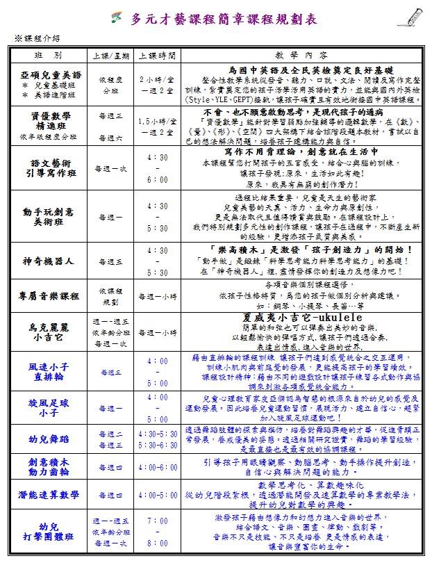 亞碩幼兒園平鎮校-多元才藝課程